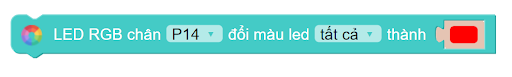 Chân kết nối: Bạn cần phải chọn đúng chân mà đèn 4 LED RGB đang kết nối với Vovinam:Bit. Như trong bài này, chân kết nối là P14