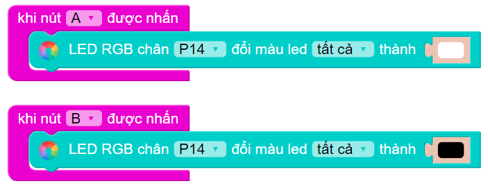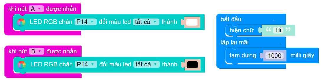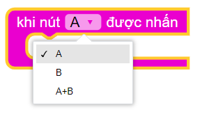 Với yêu cầu của đề bài, chúng ta chỉ cần 2 khối cho 2 nút A và B mà thôi. Chương trình gợi ý sẽ như sau: