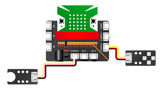 Bên cạnh đó, chúng ta sẽ sử dụng thêm 1 buzzer (1 chiếc loa nhỏ) để phát âm thanh báo hiệu. Trên mạch Vovinam:Bit đã được tích hợp một buzzer nhỏ để phát âm thanh.