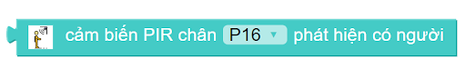 Để sử dụng cảm biến phát hiện chuyển động PIR, chúng ta sẽ dùng khối lệnh sau: