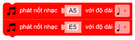 Để bật âm thanh trên buzzer, các bạn sử dụng 2 khối lệnh sau, nằm ở danh mục ÂM NHẠC: