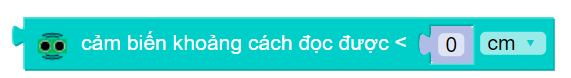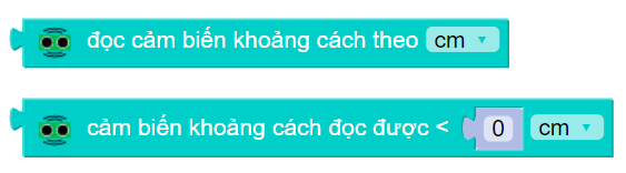 Khối lệnh đầu tiên sẽ giúp chúng ta đo khoảng cách từ cảm biến đến vật thể. Khối lệnh thứ 2 sẽ đo khoảng cách từ cảm biến và so sánh với điều kiện nhập vào.