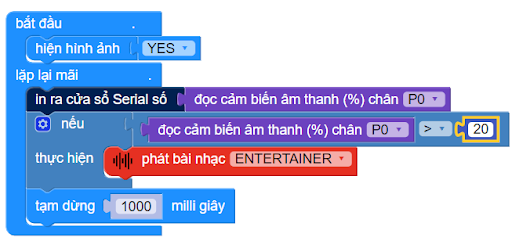 Bạn có thể kết nối cảm biến âm thanh với chân P0, P1 hoặc P2 trên mạch mở rộng, vì giá trị trả về của cảm biến có giá trị là analog.