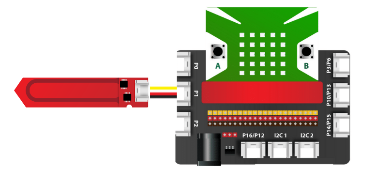 Cảm biến độ độ ẩm đất điện dung có giá trị trả về là analog, trên mạch mở rộng có 3 chân có giá trị analog là P0, P1, P2. Bạn có thể kết nối vào 1 trong 3 chân này để làm việc với cảm biến.