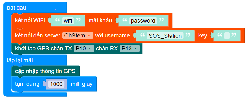 Sau khi khởi tạo, chúng ta sẽ cập nhật thông tin GPS bằng khối lệnh :