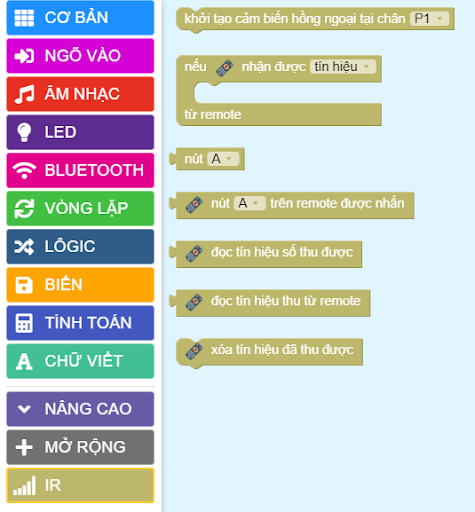 Sau khi tải thư viện, trong danh mục khối lệnh sẽ xuất hiện các khối lệnh tương ứng: