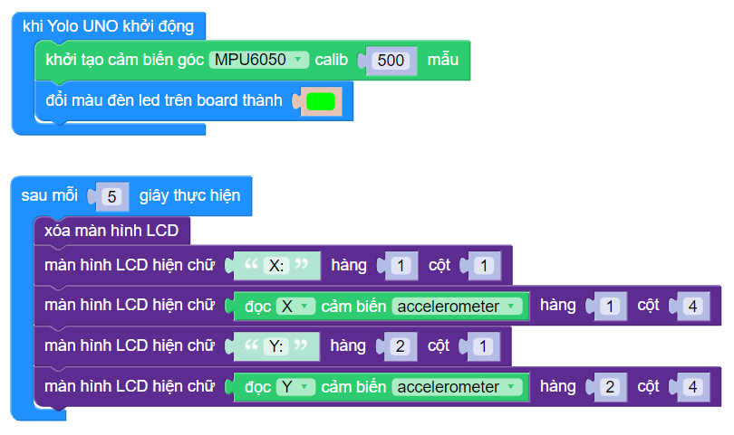 Gửi chương trình vào Yolo UNO và lắc nhẹ cảm biến. Quan sát kết quả trên LCD.