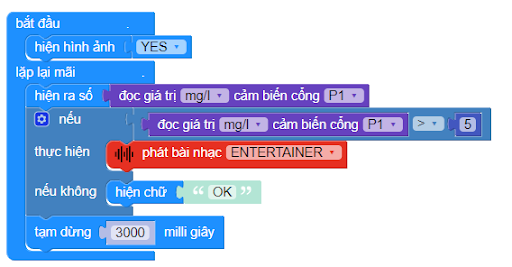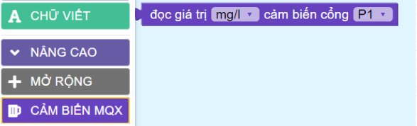 Đọc giá trị của khí gas bằng câu lệnh đọc giá trị mg/l cảm biến cổng P1 trong thư viện cảm biến MQx.