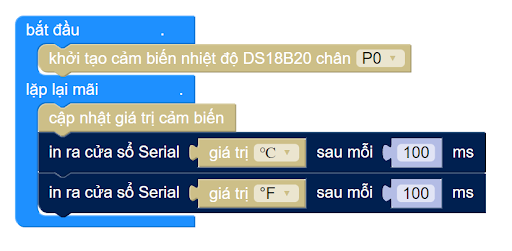 Chương trình minh họa việc đọc nhiệt độ của cảm biến DS18B20 sẽ như sau: