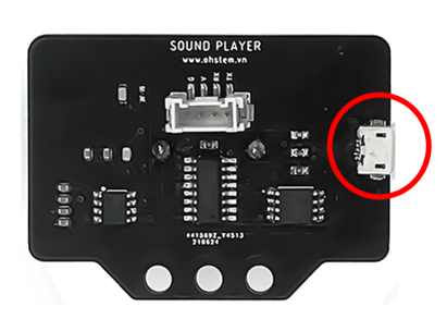 Bước 1: Kết nối module Sound Player (cổng lưu file được khoanh đỏ như hình bên dưới) với máy tính bằng dây cáp USB type C.