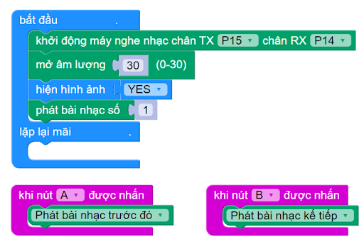 Sau khi thực hiện xong phần hướng dẫn Sound Player cơ bản này, trong danh mục khối lệnh sẽ xuất hiện các khối lệnh tương ứng: