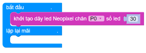 #define PIN_NEO_PIXEL P0 // Chân của Yolobit được kết nối với NeoPixel