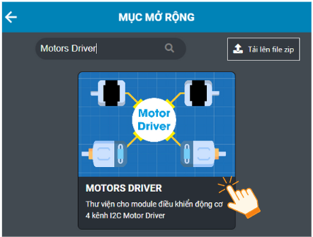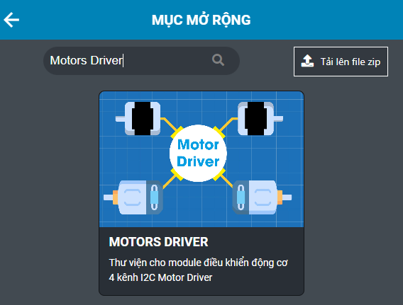 Ví dụ: Tìm thư viện Motors Driver cho Vovinam:Bit, bạn gõ như hình sau: