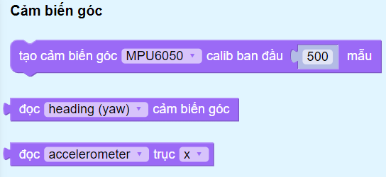 Khởi tạo cảm biến góc MPU6050 và chạy tinh chỉnh ban đầu với 500 mẫu. Việc tinh chỉnh này là cần thiết vì mỗi cảm biến luôn có sai số khác nhau. Số mẫu càng cao thì càng chính xác nhưng làm chương trình khởi chạy tốn thêm thời gian.