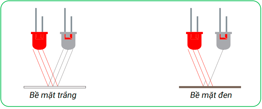 Cảm biến dò line được dùng để phát hiện màu đen và màu trắng trên nền thông qua tia hồng ngoại. Dựa vào đặc tính phản xạ ánh sáng trên bề mặt, cảm biến sẽ phát hiện được màu đen và trắng: