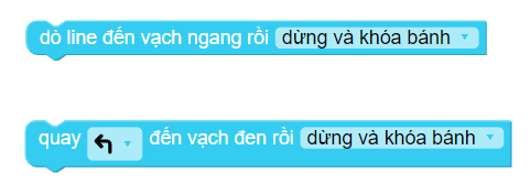 Ngoài ra, còn có các khối lệnh điều khiển robot di chuyển đến cuối vạch đen, xoay cho đến khi gặp vạch đen… dùng cho các tình huống khác nhau trên sa bàn.