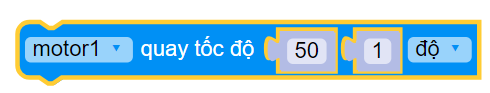 speed: Tốc độ chỉ định, đơn vị là % so với tốc độ tối đa của động cơ, nhận giá trị từ -100 đến 100. Tốc độ < 0: Động cơ quay ngược chiều kim đồng hồ và ngược lại.