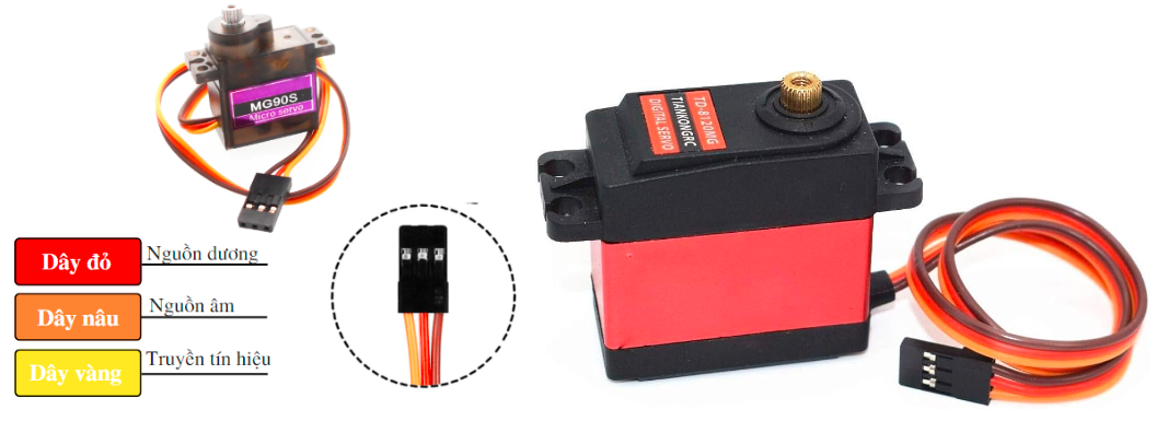 Nếu bạn cần độ chính xác cao và kiểm soát chuyển động tốt, hãy sử dụng động cơ servo, dùng nhiều cho các cơ cấu gắp thả, lên xuống như cánh tay.