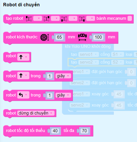 Các khối lệnh để khai báo và điều khiển robot di chuyển nằm trong mục Di chuyển.