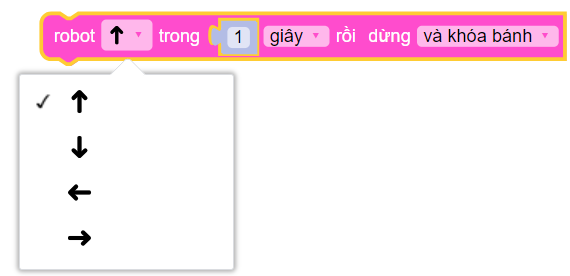 Khi chọn tốc độ quá thấp, lực quay của bánh xe không đủ mạnh để robot di chuyển, robot sẽ đứng im tại chỗ. Để giải quyết vấn đề này, bạn chỉ cần chọn tốc độ cao hơn.