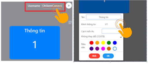 Username bạn cần đặt giống như username bạn cấu hình trên bảng điều khiển thông tin. Kênh dữ liệu sẽ gồm từ V1 đến V20 theo đúng như ta đã cấu hình trên bảng điều khiển IoT.