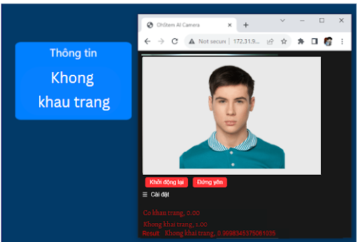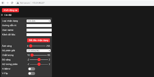Ở phần Result sẽ là kết quả mà AI nhận dạng được và độ tin cậy của kết quả, kết quả sẽ được gửi lên trực tiếp server IoT của VovinamStem