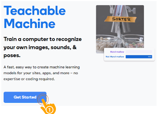 Truy cập vào trang web: https://teachablemachine.withgoogle.com/ và chọn Get Started: