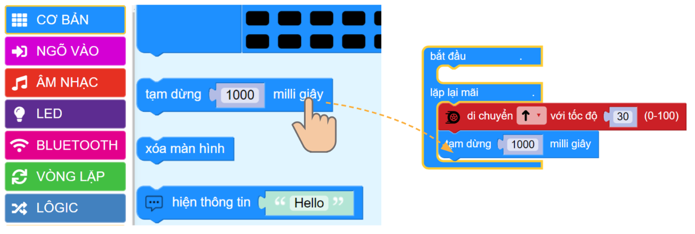 Thêm khối tạm dừng 1 giây (1000ms)