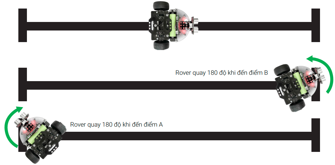 Rover sẽ cần đi từ điểm A đến B và ngược lại. Đoạn vạch đen ở cuối mỗi đoạn là đặc điểm cho Rover biết đã đến cuối đường