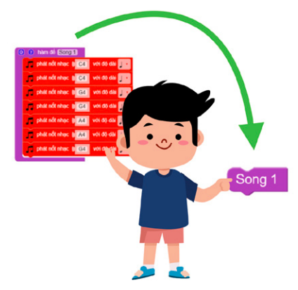Hàm giống như việc bạn tạo thêm một loại khối lệnh mới để sử dụng, và khối lệnh này bao gồm các khối lệnh con bên trong