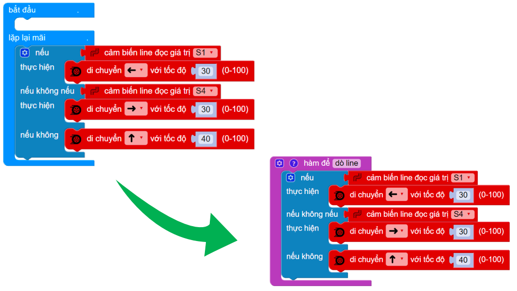 Đưa các khối lệnh vào trong hàm, sau đó đặt tên cho hàm.