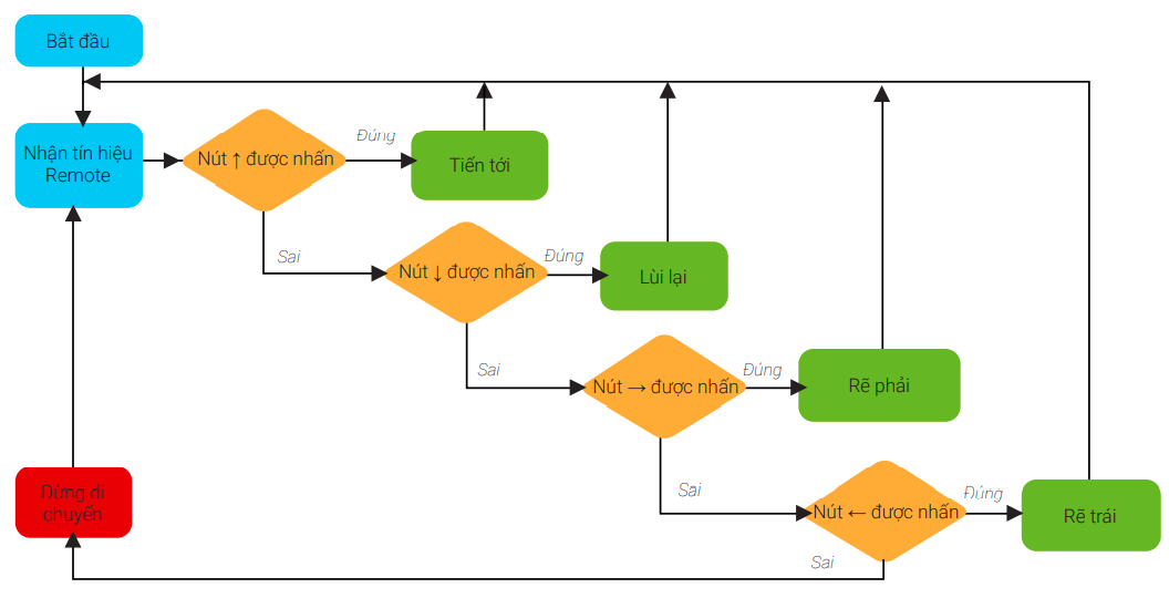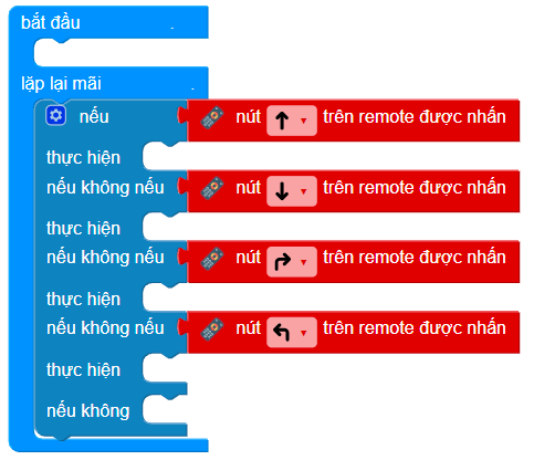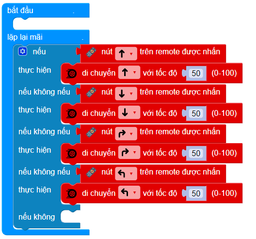 Đặt lệnh di chuyển tương ứng với mỗi nút, dừng lại khi không nhận tín hiệu nào