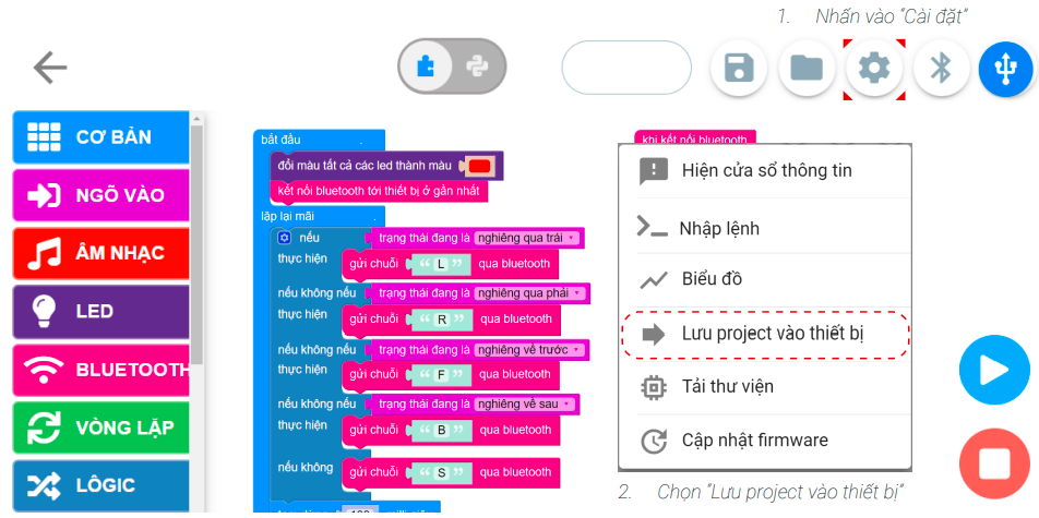 Đặt lệnh gửi đi tương ứng trong thuật toán