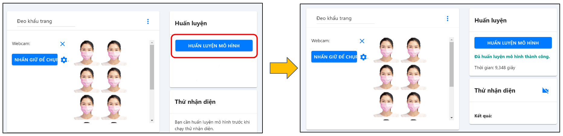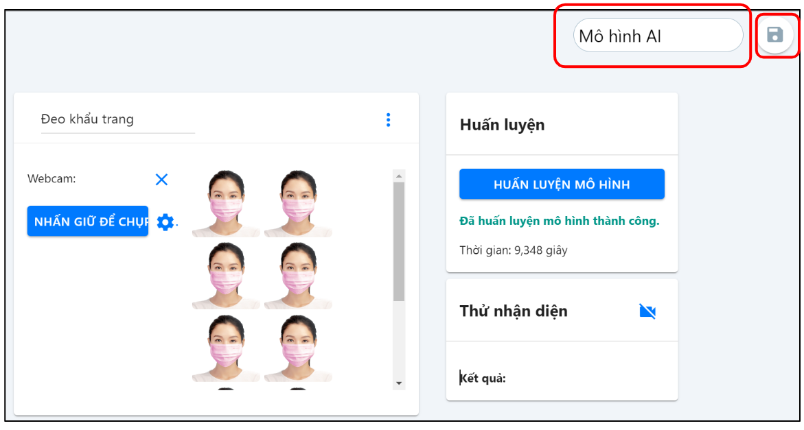 Bước 4: Chọn HUẤN LUYỆN MÔ HÌNH và chờ hệ thống huấn luyện