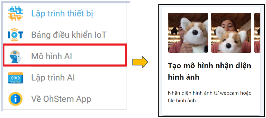 Bước 1: Từ trang chủ, bạn chọn vào Mô hình AI, chọn tiếp Tạo mô hình nhận diện hình ảnh, như minh họa ở hình bên dưới:
