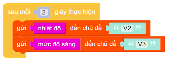 Yêu cầu: Định kỳ cập nhật thông tin nhiệt độ, ánh sáng từ Rover lên Server IoT (bảng điều khiển)