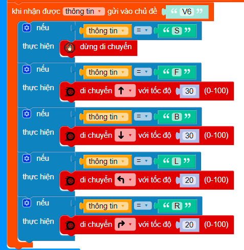Yêu cầu: Điều khiển robot di chuyển theo các hướng thông qua bảng điều khiển IoT