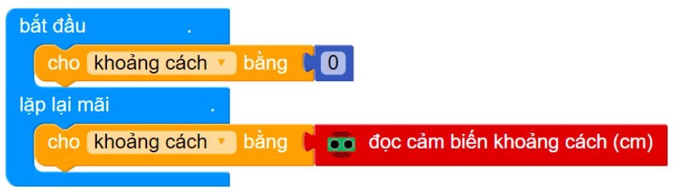 Khởi tạo biến “khoảng cách” (cho biến có giá trị bằng 0), và gán giá trị khoảng cách đọc được vào biến