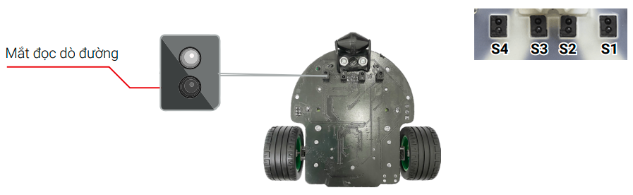 Cảm biến dò đường trên Rover gồm 4 mắt đọc nằm ở mặt dưới xe được đánh số từ S1 đến S4.