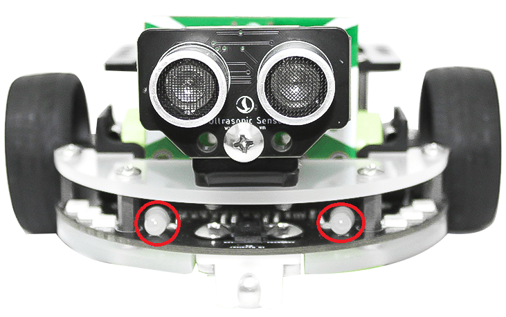 Hai đèn LED trắng đầy đủ màu được điều khiển bởi mạch mở rộng robot Rover, được đặt cả hai bên của phần mặt trước