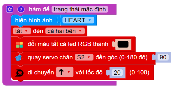 Chúng ta khởi tạo các chế độ cho xe bằng cách sử dụng hàm.