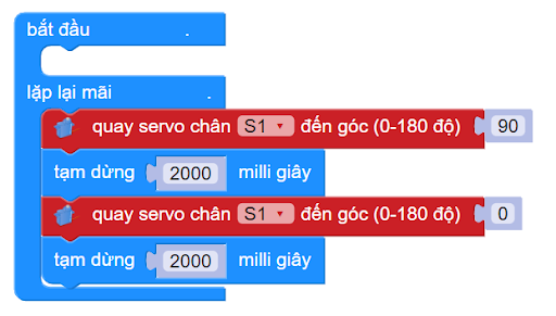 Trên Rover, có 2 cổng kết nối để điều khiển servo S1 và S2. Khi lập trình bạn cần chọn đúng cổng đã kết nối!