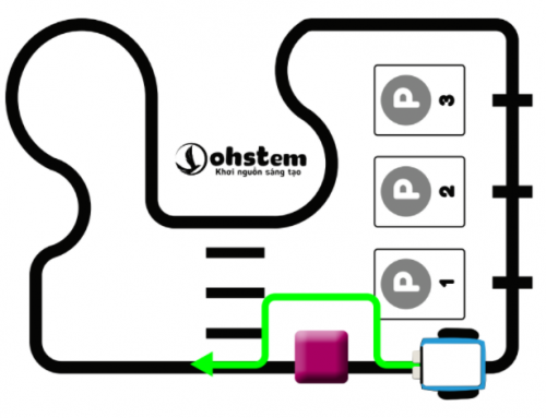 Để đi vòng qua vật cản thì cần rẽ phải => đi thẳng => rẽ trái => đi thẳng => rẽ trái => đi thẳng cho đến khi gặp vạch đen thì rẽ phải.