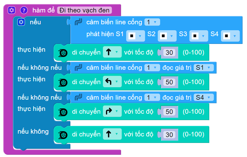 Tương tự như trên, ta tạo hàm có tên “dò line”.