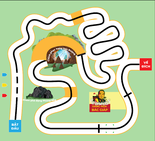 Trong sa bàn này, robot sẽ là một nhà hướng dẫn viên tài ba, dẫn chúng ta tham quan các địa điểm du lịch, di tích nổi tiếng như động Phong Nha, hang Sơn Đoòng,… Bạn có thể đổi các địa điểm này thành danh lam thắng cảnh tại địa phương bạn tùy thích.