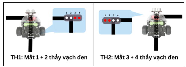 Mắt 3 hoặc cả mắt 3 + 4 thấy vạch đen: Robot rẽ phải