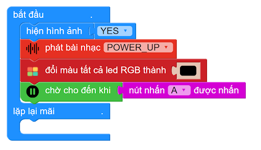 Khi nút A trên robot được nhấn, robot mới thực hiện các câu lệnh bên dưới (các câu lệnh để giải mê cung):