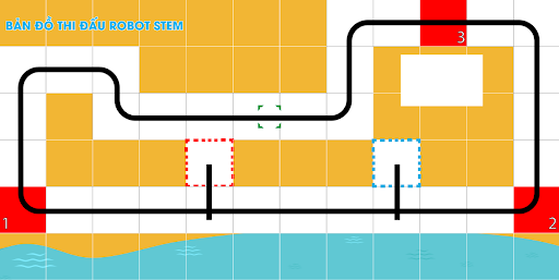 Trên sa bàn này, robot cần thực hiện 3 nhiệm vụ chính: