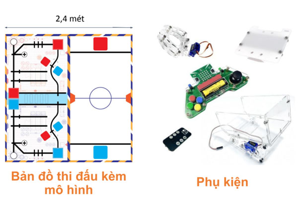 Bản đồ thi đấu có hình vuông, kích thước 2,4 mét x 2,4 mét. Bên trên bản đồ sẽ có kèm các mô hình dùng để phục vụ những thử thách trong cuộc thi robot.