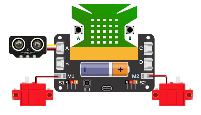 Khi bắt đầu, robot sẽ di chuyển về phía trước, khi gặp vật cản, robot sẽ bật đèn đỏ cảnh báo và rẽ phải.